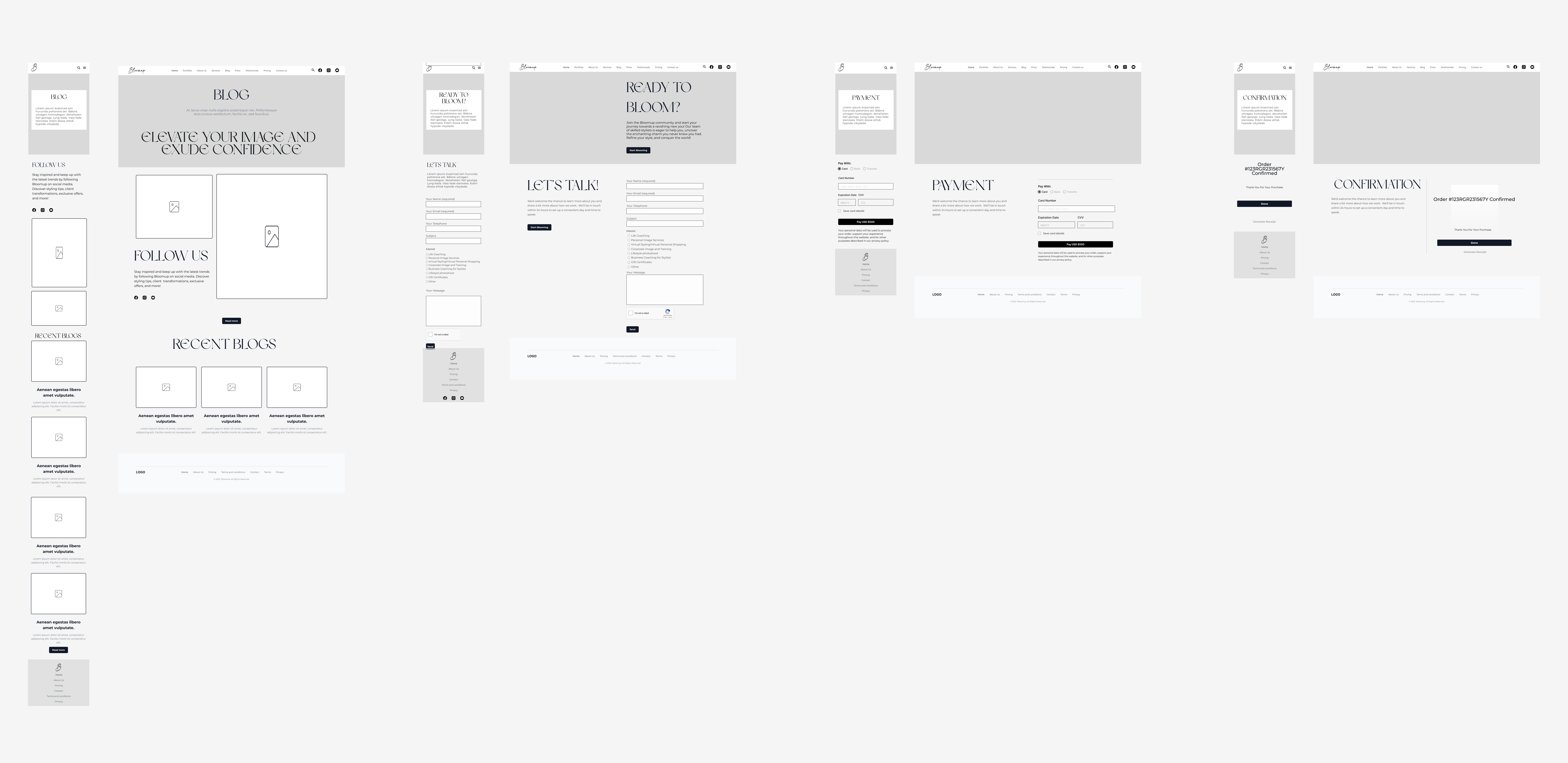 Wireframes were incredibly beneficial in the Bloomup project as they served as the initial visual representation to conceptualize and validate ideas. They brought lucidity to the various stages of design, highlighting distinct concepts through basic shapes. One particularly advantageous feature of wireframing is its transient nature, emphasizing the significance of prioritizing key screens. In my case, I concentrated on crafting the “landing page” and “portfolio” screens, demonstrating the arrangement of essential components such as images, logos, navigation bars, and call-to-action buttons, accompanied by informative annotations. This approach facilitated a clear roadmap for the project’s design direction, allowing for iterative improvements in alignment with Bloomup’s objectives.