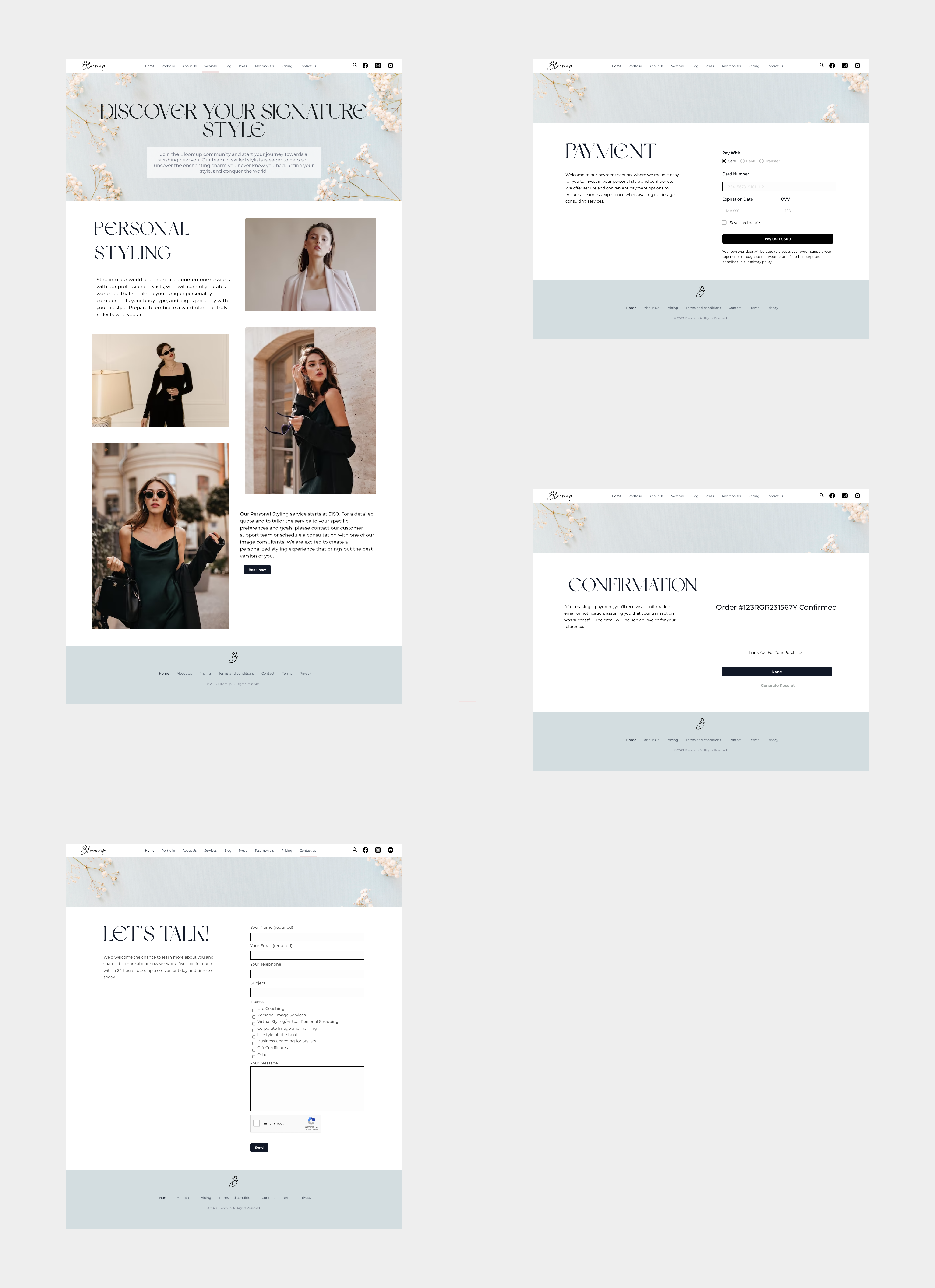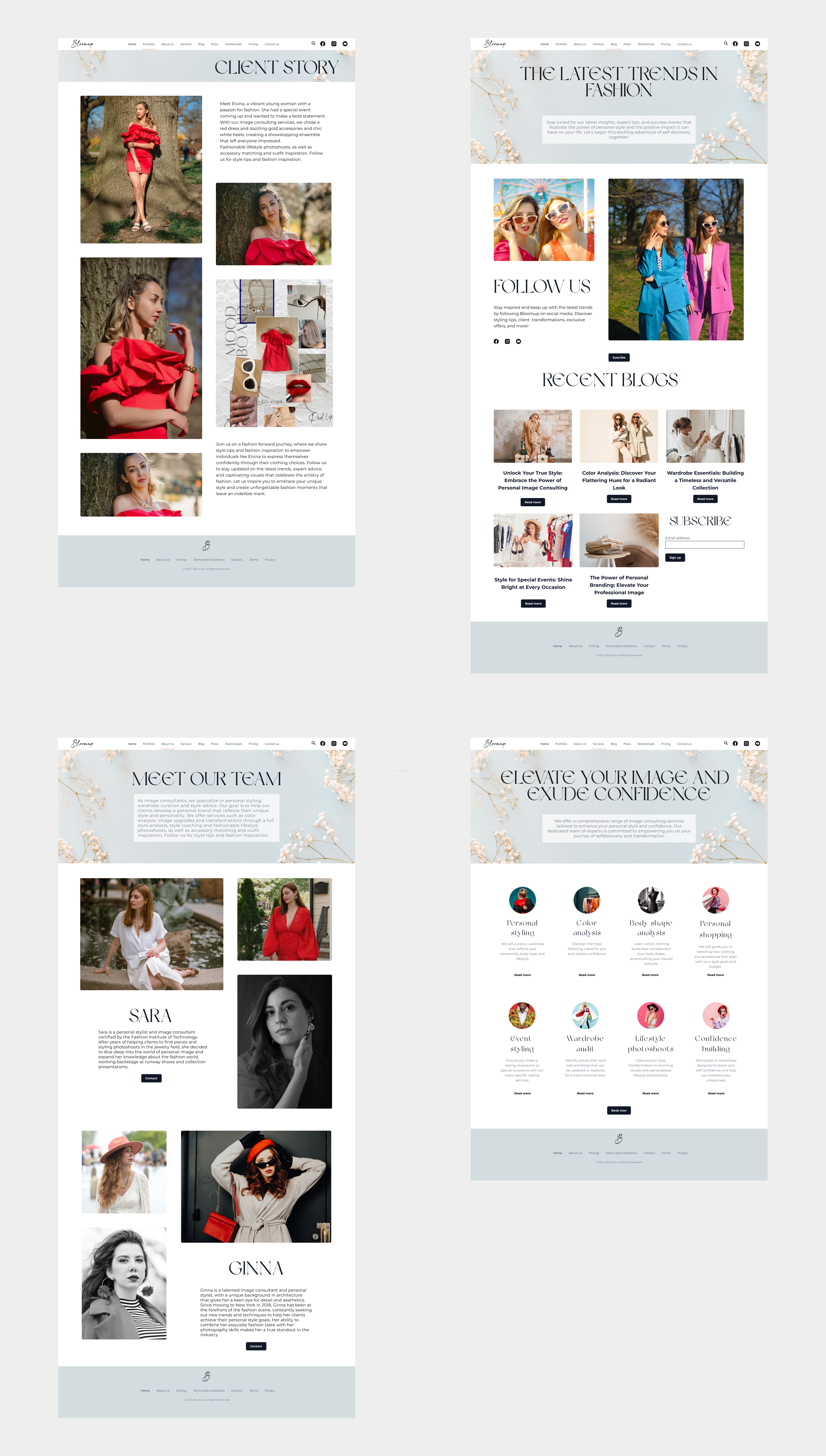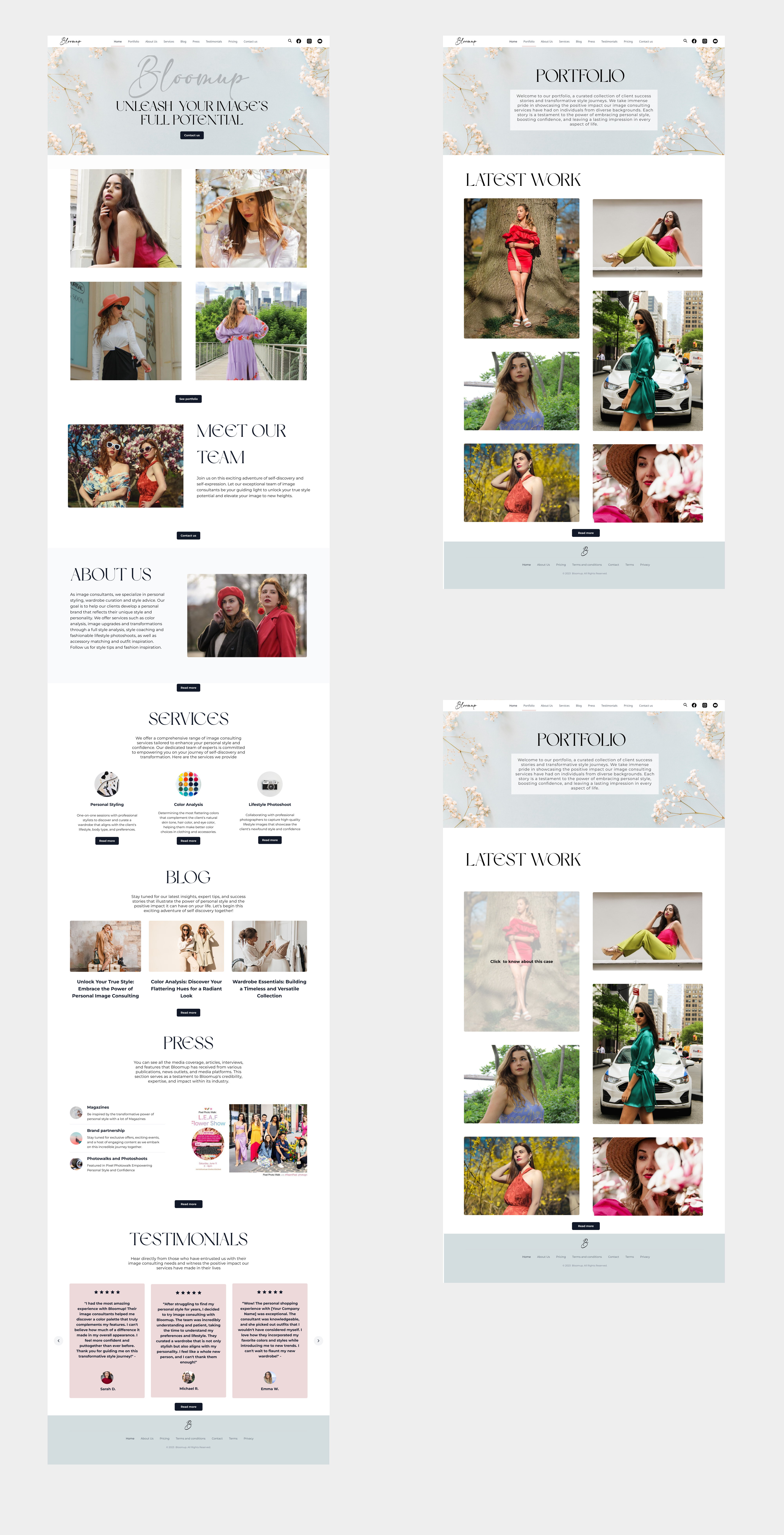 Bloomup is a modern image consulting firm focused on empowering individuals to embrace their unique style and boost confidence. With a modern and elegant design and a soft color palette, Bloomup offers personalized and transformative experiences to clients worldwide. By understanding each client’s personality and aspirations, Bloomup curates tailored style solutions. The firm’s commitment to innovation and client satisfaction makes it a go-to destination for those seeking to bloom into their best selves.