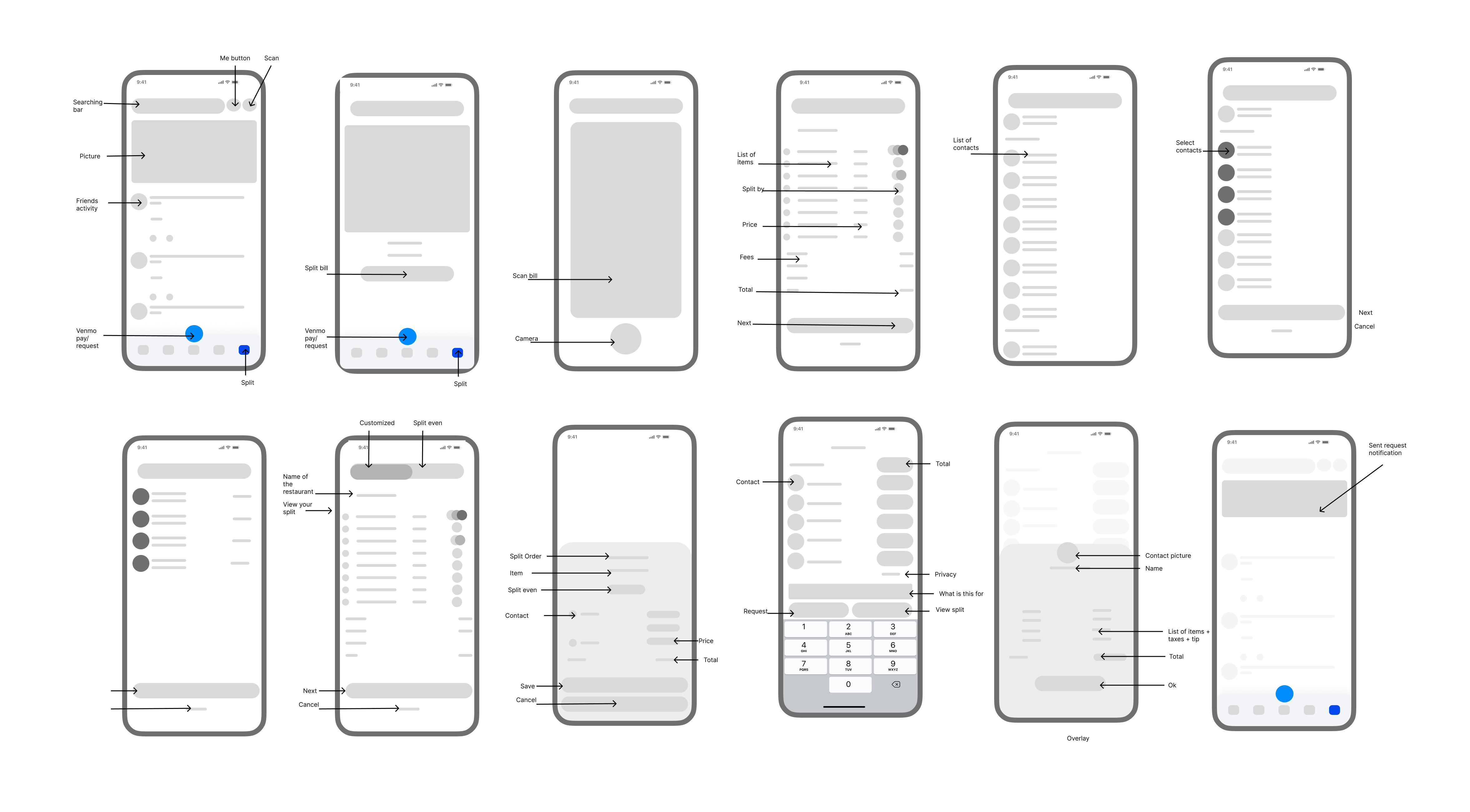 Wireframes were incredibly beneficial in the Venmo project as they served as the initial visual representation to conceptualize and validate ideas. These low-fidelity representations are instrumental in eliciting early feedback, ensuring that the core functionalities, such as bill splitting features, are intuitively structured and meet user expectations. As a crucial step in the design iteration process, wireframes set the foundation for the eventual creation of high-fidelity prototypes, contributing to the development of an intuitive and user centric Venmo app.
