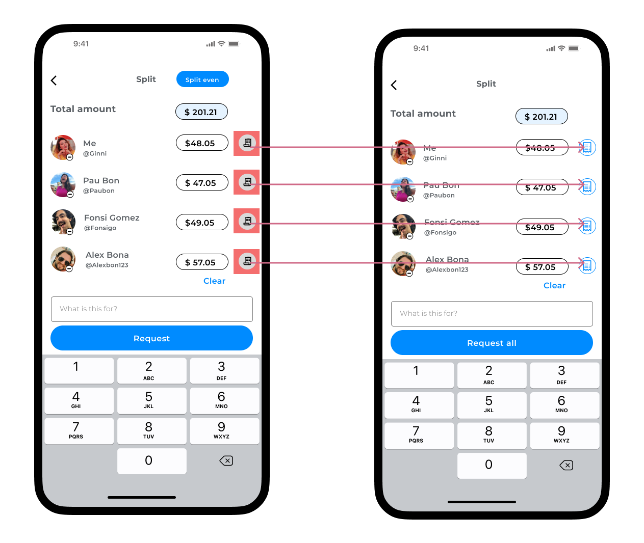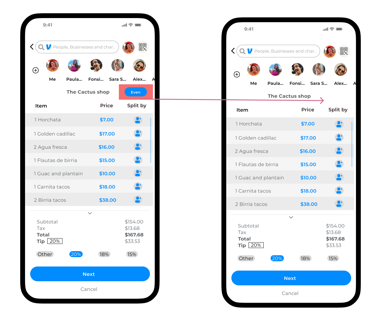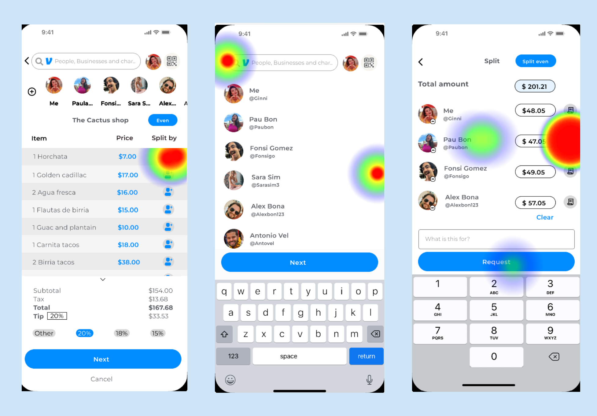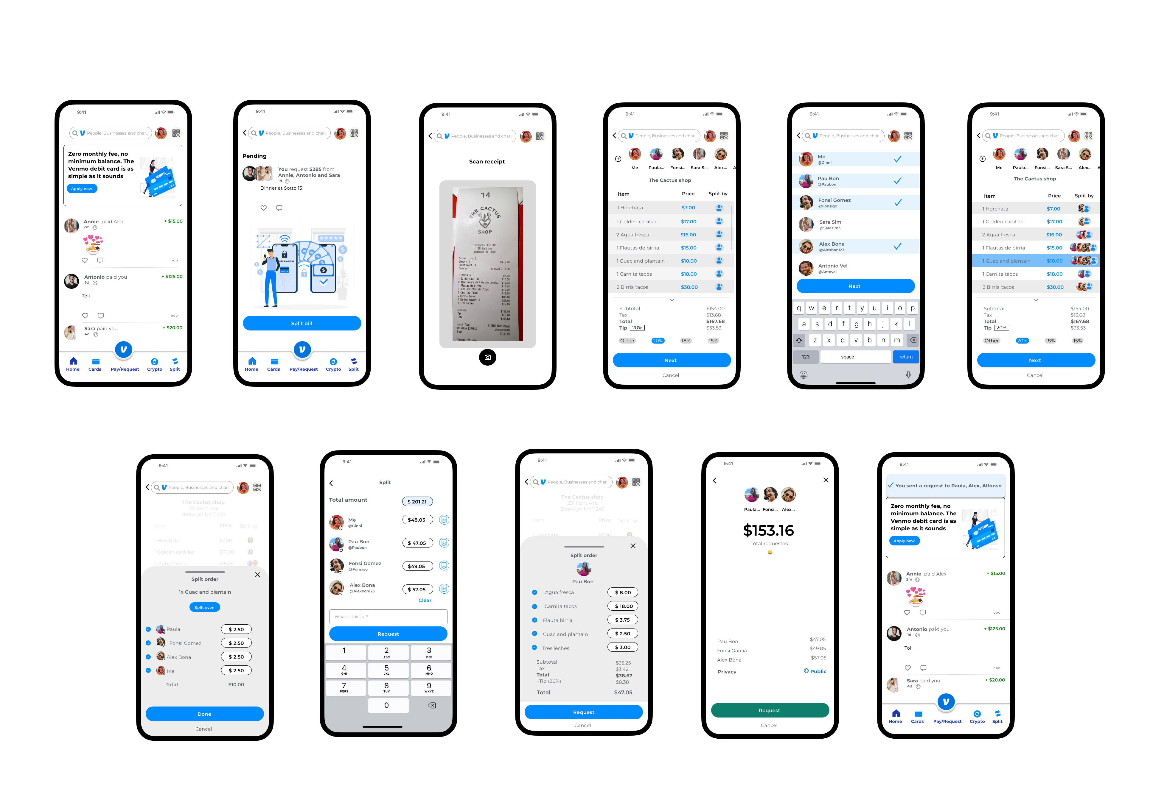 Designing the new Venmo feature had challenges in balancing innovation with familiarity. The challenge lay in infusing creativity, using the design principles while ensuring a seamless integration with Venmo’s existing design language. This iterative approach helped refine the visuals and interactions for a fresh and user friendly bill-splitting experience.