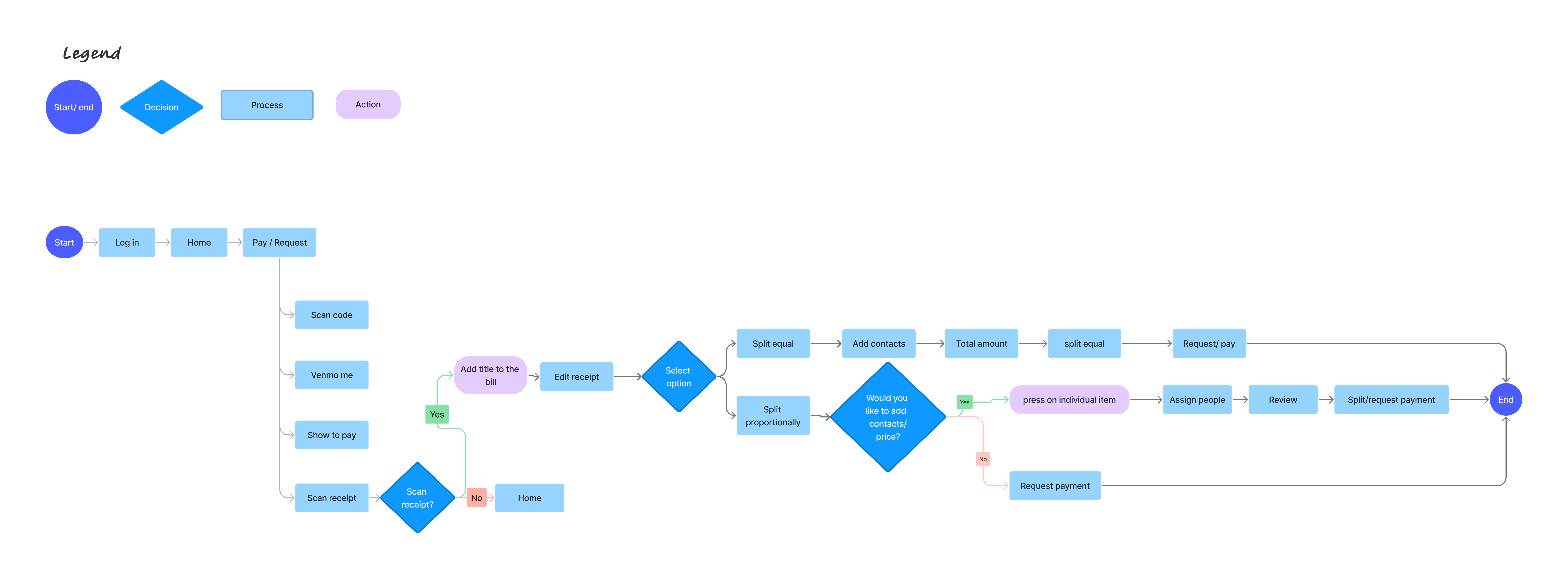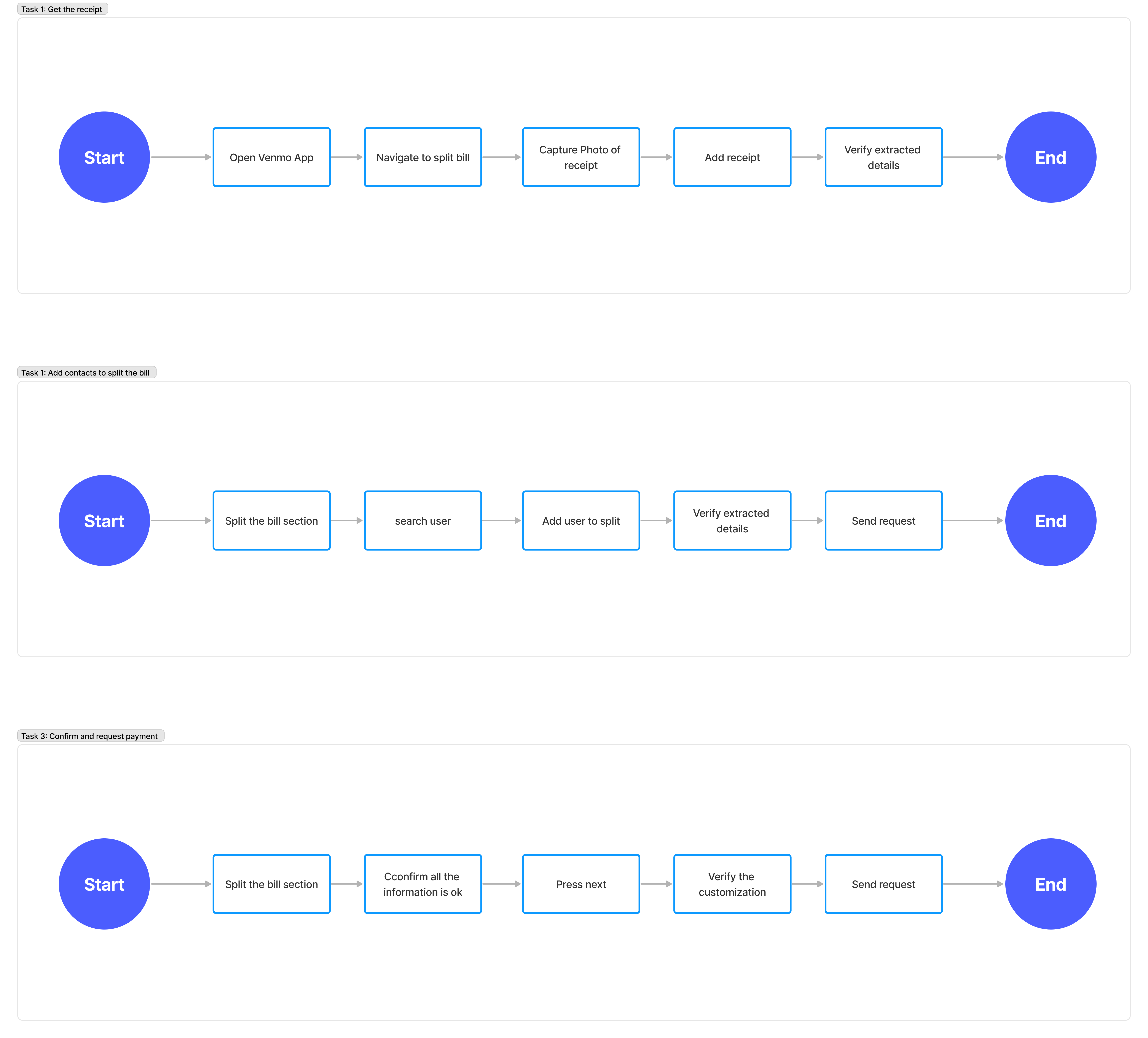 These flows contribute to the development of a seamless and user friendly experience, ensuring that users can effortlessly accomplish tasks like bill splitting while maintaining an understanding of their broader navigation within the Venmo app. These design methodologies are pivotal in crafting an app that not only meets user expectations but also enhances user satisfaction through intuitive and efficient interactions.